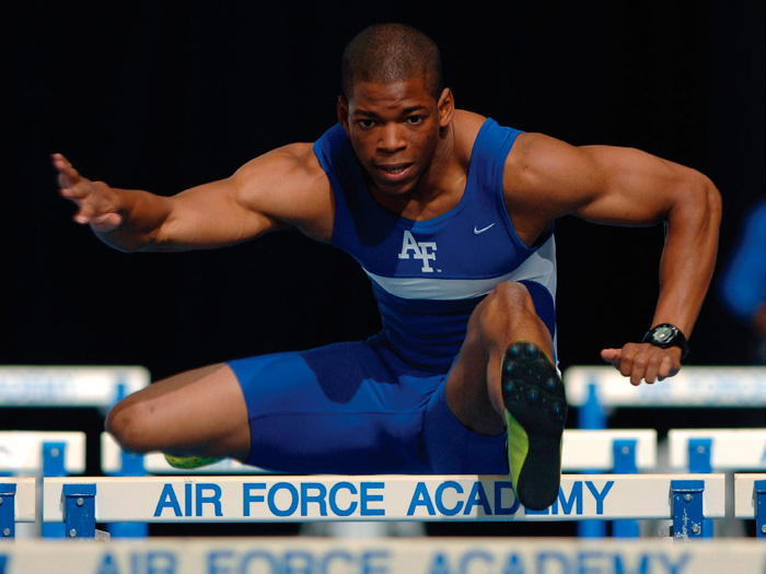 United States Air Force Academy junior Kellen Curry paced the field of the 60-meter men’s hurdles with a winning time of 8.09 seconds at the Air Force All-Comers Meet Jan 13 at Colorado Springs, Colorado. The Air Force track and field team opened the season by hosting the annual competition.
