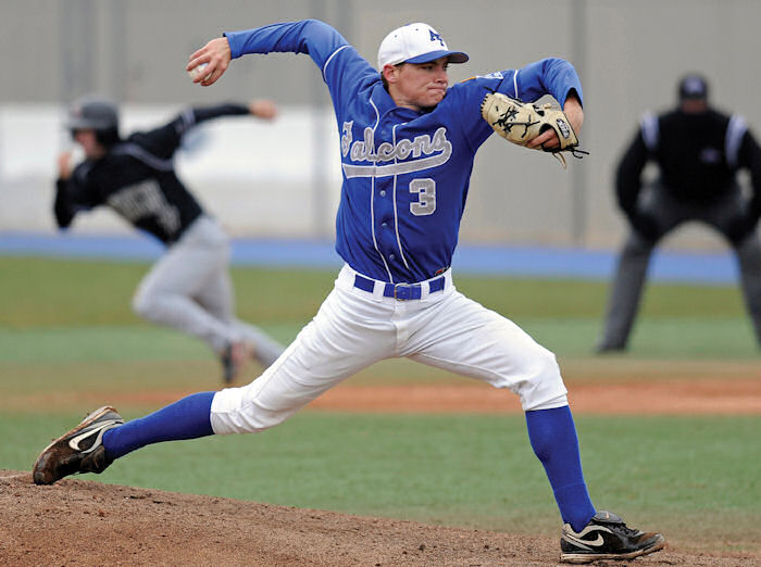 U.S. Air Force Academy junior pitcher Alex Truesdale delivers a pitch during the 20-13 loss to the University of Nevada, Las Vegas at Falcon Field April 25, 2009, at the Academy in Colorado Springs, Colo. The Falcons had 18 hits on the day with three homers, but dropped to a 14-25 overall record.