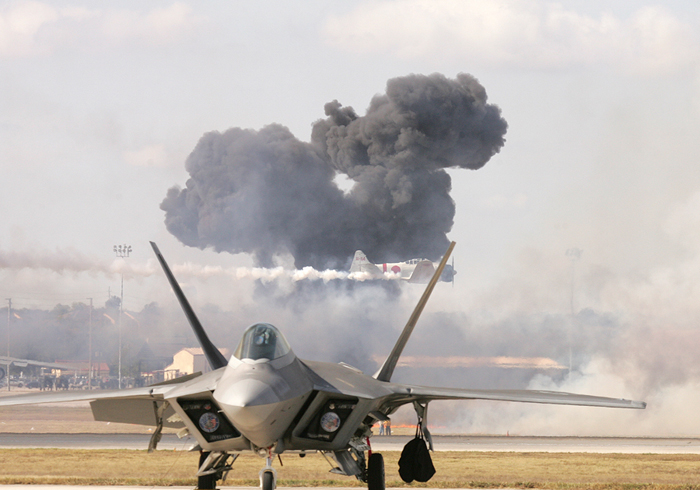 by behindan F-22 Raptor during AirFest 2008 at Lackland Air Force Base, Texas